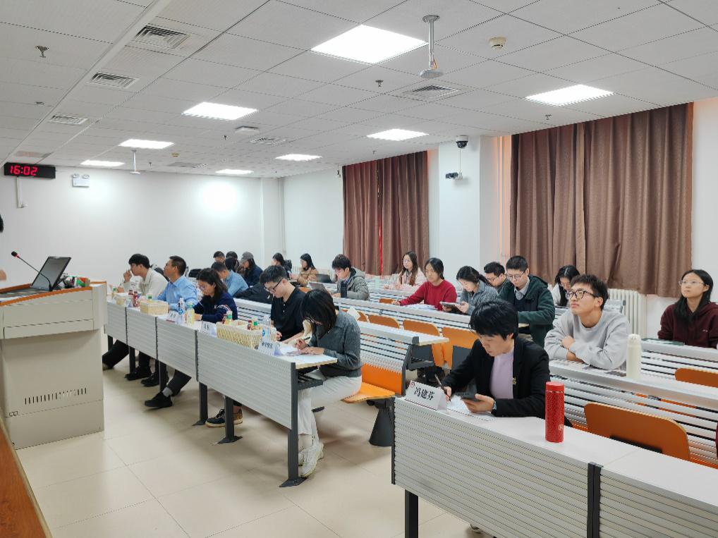 在求索楼602会场,汇报聚焦于产融实践、企业套期保值研究综述与产品创新三大方向。3个小组累计10余名同学结合本学期奔赴杭州、哈尔滨等地对棕榈油、大豆产业链的实地调研成果,生动呈现了期货市场服务实体产业的真实场景。1个小组对商品期货套期保值的经典理论与产业服务效果的研究梳理,展现了扎实的文献阅读功底和严谨求实的科研态度。4个小组对“大商所均价期货产品创新”和“商品场外期权定价与风险”等前沿课题,从不同角度进行了深入的应用分析与模型探讨。本会场由王思懿主持,马潇潇、李楠、塔林夫、张大龙、刘冠民、张羽健等多位专家担任评委,他们对各组的分析框架、逻辑严谨性和实践价值进行了逐一点评,并提出了宝贵的优化建议。马潇潇老师特别针对产融实践的意义和大商所推出均价期货的目的与同学们进行了深入交流。
