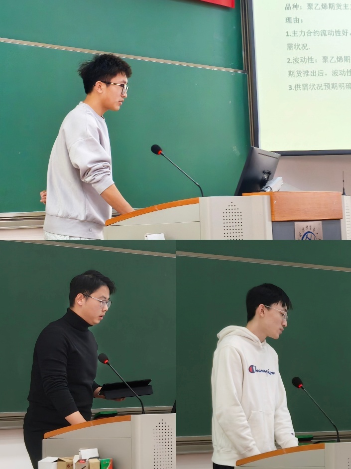 在课程实践成果分享环节,选课同学林可心、张春来、刘禹萱分享了在期货期权交易实践中的心得体会。他们从实际操作出发,分析了交易过程中的策略与反思,展现了理论与实践相结合的学习成果。