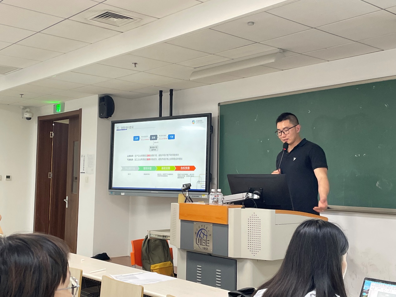 2024年5月23日下午,《金融衍生工具》课程组在求索613举办衍生品应用实务讲座,邀请中粮期货研究院油脂油料研究员贾博鑫先生,系统介绍了“油脂油料产业链套期保值”的理论与实务,“油脂油料产业链实践”课程小组的同学聆听了此次讲座,《金融衍生工具》授课教师杜冬云主持讲座。