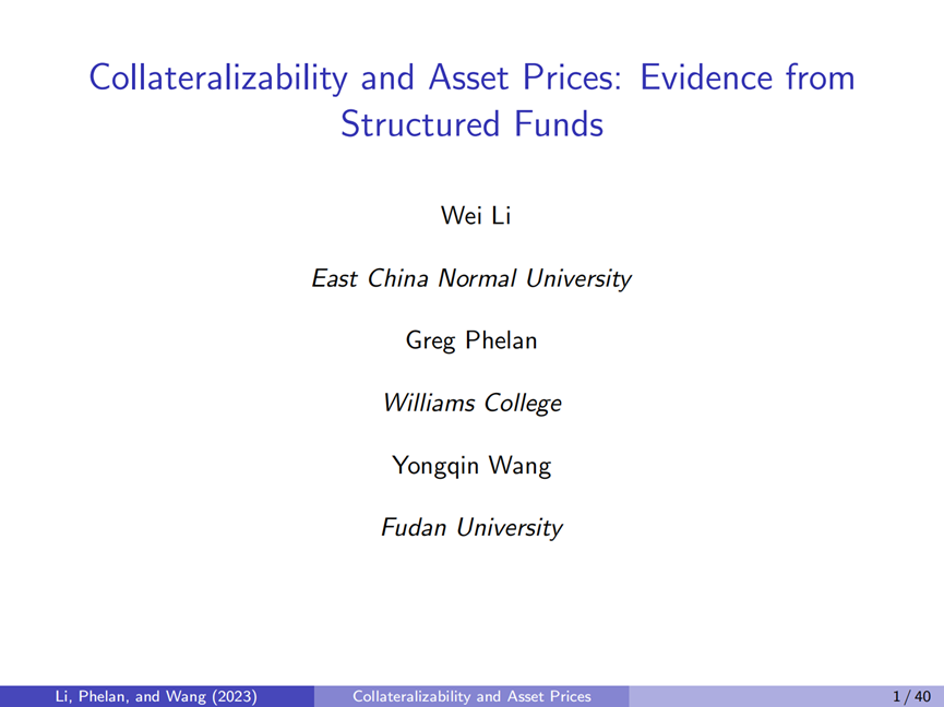 复旦大学王永钦教授在线上分享有关可抵押资产定价的研究。王永钦教授介绍了中国结构性基金的一个重要特征,即允许对同一组资产进行杠杆和非杠杆交易。王永钦教授以此展开实证设计,对资产可抵押性价值进行了检验。王永钦教授指出,更强的可抵押性导致更高的抵押品价值和更高的资产价格。