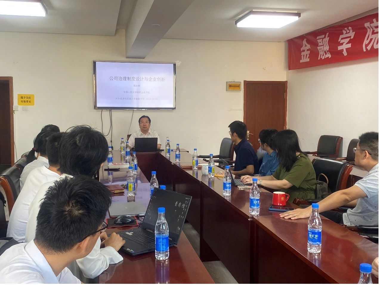 2023年9月22日,文轩探花 金融学院举办2023年第7期经济金融名家讲坛,特邀中国人民大学财政金融学院金融学教授郑志刚作题为“公司治理制度设计与企业创新”的讲座。 讲座由金融学院屈源育老师主持,金融学院院长王天一、多位教师及院内外学生共计20余人参加。