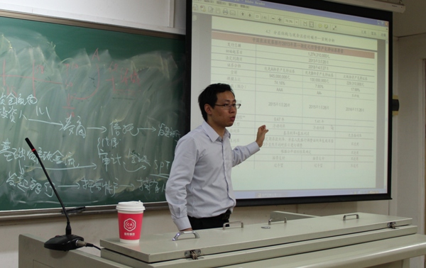 为了让大家对资产证券化有一个初步的认识,周博士介绍了资产证券化的目的,国内信贷资产证券化的交易结构,以及证券的发行过程和现金流的流动过程。接下来周博士列举了一些截至2013年6月我国金融市场上发行的证券化产品,包括开元CLO、MPL(不良贷款的证券化)、MBS(抵押资产证券化),并且比较了中美这种类型产品的差别。为了更加直观地了解证券化,周博士还拿出了一个实际的证券化产品为同学们进行具体的案例分析,让大家对初始起算日、法定到期日、优先级、固定摊还贷款、过手贷款、加权平均期限等关键专业术语有了进一步的理解。随后还简单介绍了一下资产证券化的监管要求,他表示做资产证券化的人员要对投行业务、对法律法规了解透彻,掌握信息披露原则。