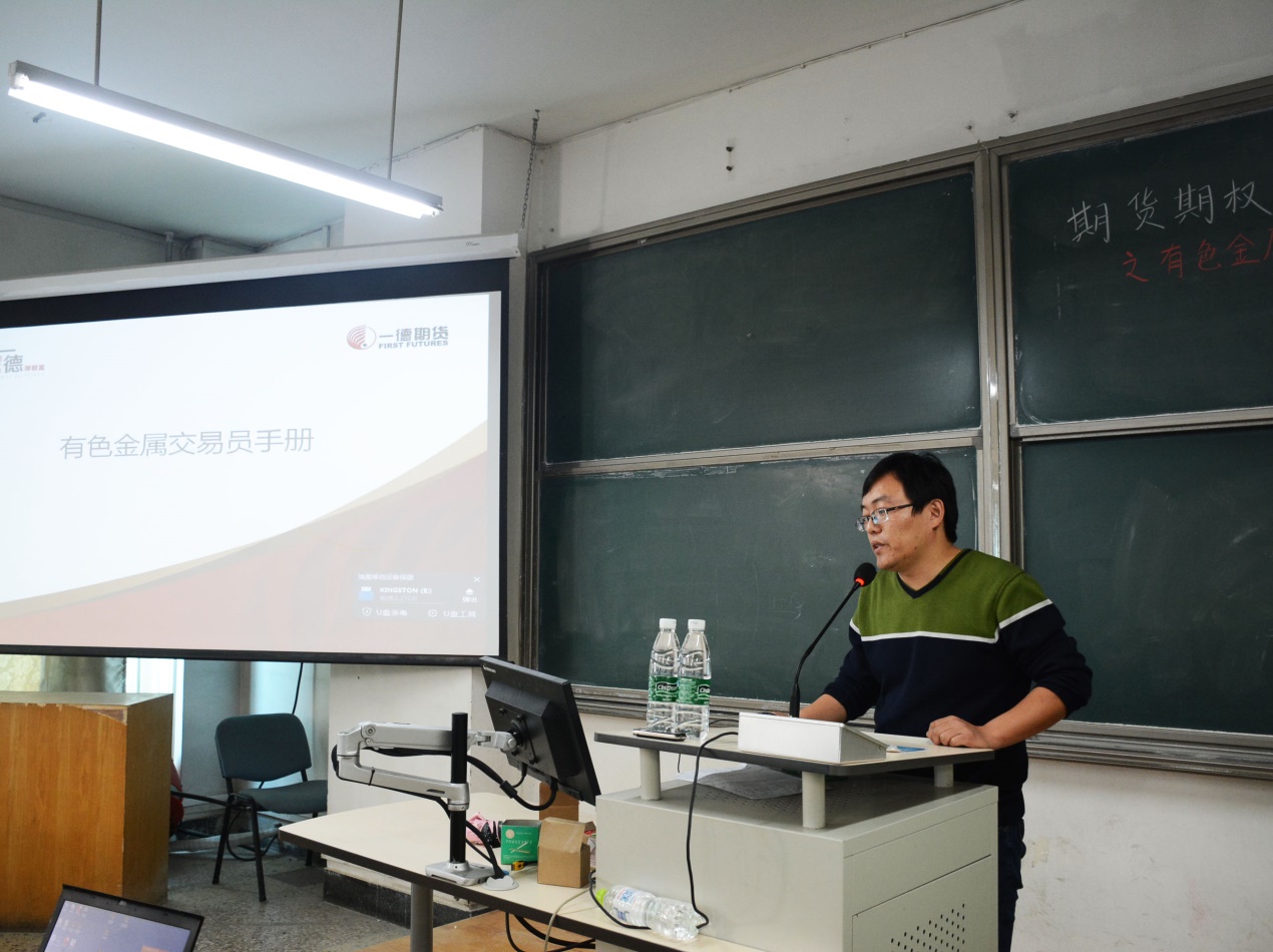 金融学院与一德期货联合举办“期货期权实务与交易策略系列论坛”系列讲座。2016年11月24日下午13:00,本次论坛的第二讲由一德期货有色金属分析师吴玉新就“有色金属产业操作实务”专题展开讲授。