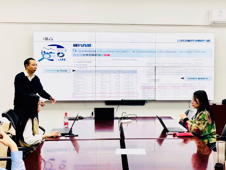 2024年11月7日下午15点,文轩探花 SBF论坛2024年第23次讲座在博学楼910举行。讲座特邀中央财经大学会计学院副教授李哲进行学术报告,论文题目为“合并范围的真与假”。本次学术讲座由文轩探花 应用金融系张修平副教授主持,李哲副教授的合作者中央财经大学会计学院博士生蔡雨恬、文轩探花 王珏、宫迪、钟腾、王骜然、朱光顺等教师和众多研究生一同参与了交流活动。