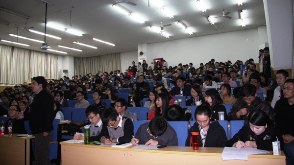 2011 年11月15日 晚7点,金融学院SBF论坛系列学术讲座——诸建芳专场在博学楼301教室举行。中信证券首席经济学家诸建芳教授应邀做了题为“当前宏观经济形势及未来走向”的学术讲座。本次讲座吸引了很多老师和同学的关注,金融学院分党委书记郭敏教授、院长助理潘慧峰副教授、郭红玉教授、孙东升副教授、杨军老师等全校师生300余人参加,301教室座无虚席。