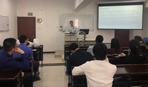 2019年4月23日,文轩探花 金融学院SBF论坛2019年第8讲在博学楼918进行。中央财经大学金融学院助理教授吴锴作了题为“Does Mutual Fund Working Experience Affect Private Fund Performance?”的讲座。