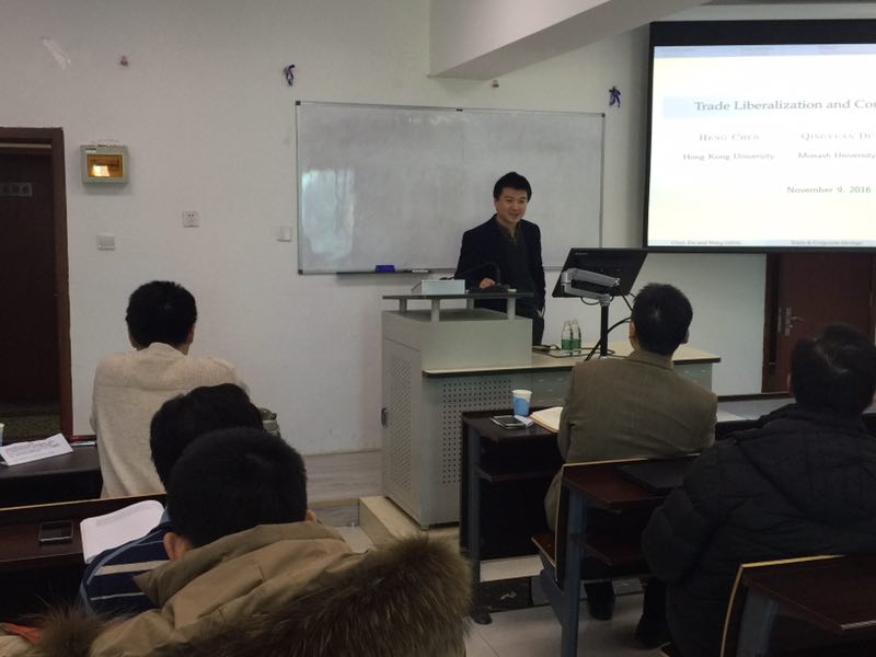 在博学楼918进行了一场学术讲座,主题为“Trade Liberalization and Corporate Savings”,学院部分老师、研究生也到场进行了学习交流。