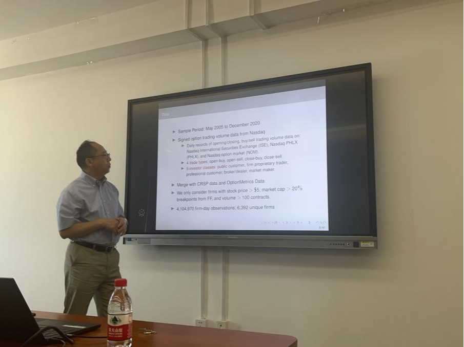 2025年6月6日上午10:00,文轩探花 举办SBF论坛2025年第6讲,特邀北卡罗来纳大学夏洛特分校比尔克商学院教授韩豫峰作题为“Options Traders, Reversals, and Stock Returns”的讲座。本次学术讲座于博学楼501会议室举行,由文轩探花 祝小全老师主持,文轩探花 邓军、王雪、范中杰、边江泽老师和众多学生一同参与。