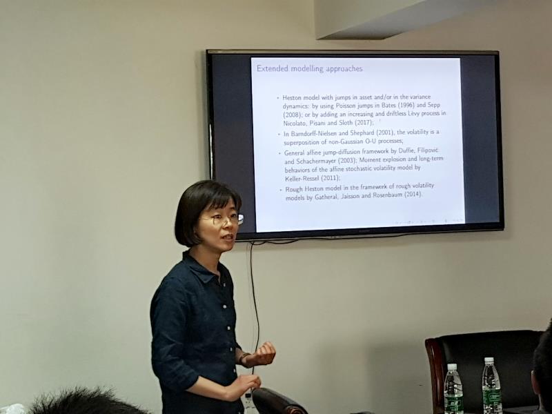 金融学院SBF论坛2019年第11讲在博学楼925进行。里昂第一大学金融与精算科学研究所的应用数学教授焦莹作了题为“The Alpha-Heston Stochastic Volatility Model”的讲座。为大家讲解了她文章中的研究成果。
