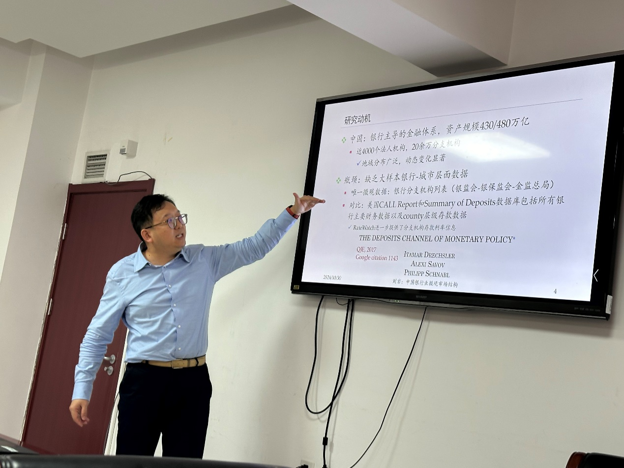2024年10月30日下午3点,文轩探花 SBF论坛2024年第19次讲座在博学楼925举行。讲座特邀武汉大学经济与管理学院金融系副系主任刘岩副教授进行学术报告,论文题目为《中国银行业微观市场结构测算与分析:2003-2022》。本次学术讲座由文轩探花 宫迪老师主持,文轩探花 姜婷凤老师、旷纯老师、储寅啸老师、范中杰老师、韩杨老师、井辰星老师和国际经济贸易学院彭玉磊老师、李晓明老师、保险学院李蔚老师和众多学生一同参与。