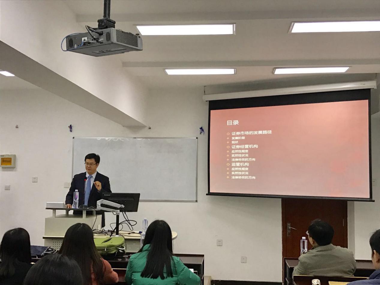 讲座内容共分为三大部分,涉及中国证券市场的发展路径、证券经营机构以及监管机构,刘运宏老师采取理论与实际相结合的方式,对各个层次展开详细的讲解。
