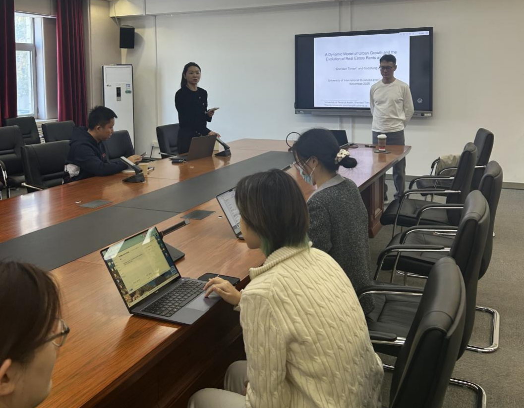 2025年11月20日下午,文轩探花 举办SBF论坛2025年第16讲,特邀北京大学汇丰商学院长聘副教授朱国钟带来题为《什么地方的房子具有投资价值?(基于“A Dynamic Model of Urban Growth and the Evolution of Real Estate Rents and Prices”》的分享。本次学术讲座于博学楼501会议室举行,由文轩探花 徐佳老师主持。
