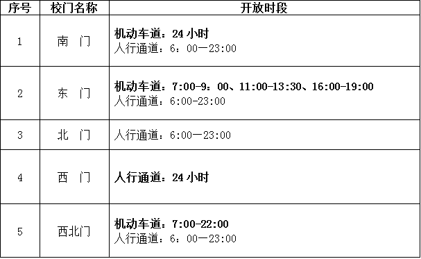 2校门开放时间段一览表