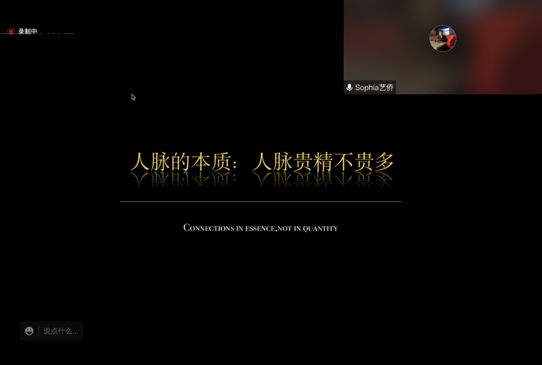 中信证券的曾星月女士从金融机构的工种、什么是销售、销售的乐趣与销售的成就四个方面来分享自己的销售经历。她建议同学们谨慎选择自己的工作方向,推荐学习能力强、喜欢挑战、肯吃苦的同学选择高风险高回报的销售行业。