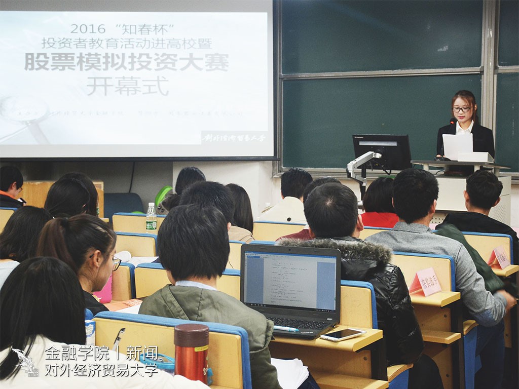 宣传中心 讯(记者:肖宇萌 摄影:秦畅)为锻炼学生的投资思维、提高专业素养,金融学院特主办了本次投资者教育活动与股票模拟投资大赛。股票模拟投资大赛由国泰君安证券有限公司赞助,于2016年11月11日下午18:30在博学楼409教室进行开幕式。