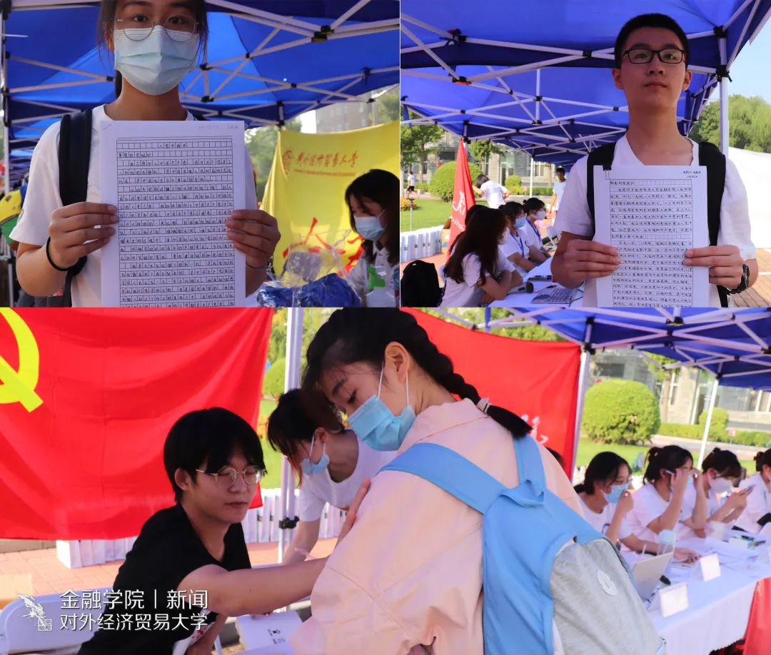 学院党委组织,新生可于报到当天向学院党组织提交入党申请书。新生假期积极准备,争当第一批积极分子,9月1日报道当天共收到53份崭新的入党申请书。