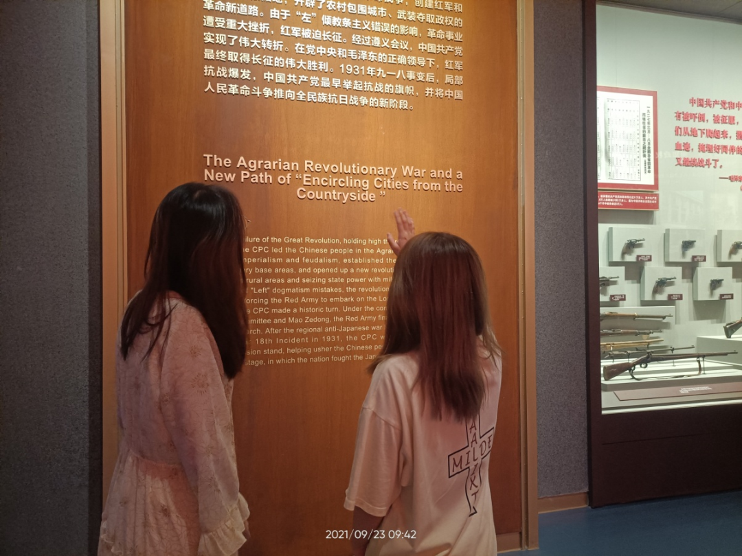 搅动寰宇始德胜,中华崛起尽伍豪。从毛主席、周总理等第一代领导人开始,中国共产党不断创新并坚持正确的中国特色社会主义路线,从红军战士为保卫家国献出生命,到一代一代的领导人、科研团队为了国家发展呕心沥血,中国从一个任人宰割的闭塞国家百年来昂首阔步,已然跻身世界强国行列。按照百年来漫长的时间轴参观,我们感受到了先辈们的伟大,如今,时代的接力棒传递到了我们手中,我们定会坚决维护中国共产党的领导,为祖国发展奉献出属于自己的一份力量。