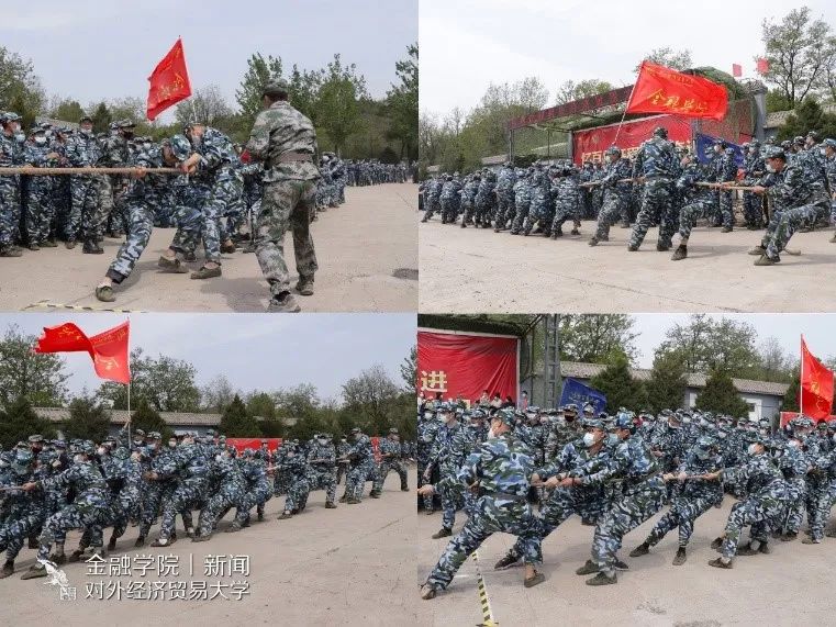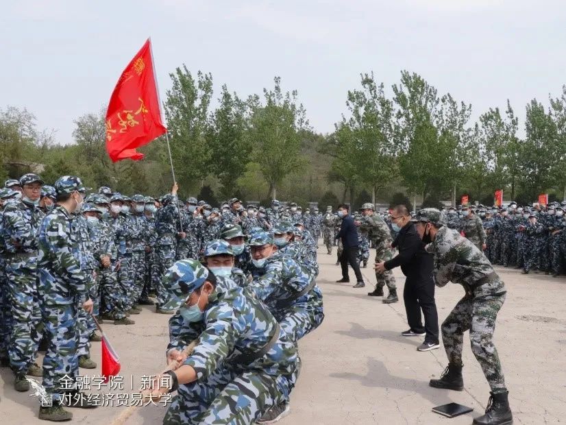 在慰问的师生代表们到达基地不久后,为了增强团队凝聚力,增强军训的趣味性,军训基地安排了拔河比赛,在一、六、九营的金融学院20级的同学们组成代表队共同参赛。在师生们的共同期待中,比赛拉开了帷幕,比赛哨声响起,大家便卯足了劲跟随口号和呐喊声一同拼搏。同学们的呐喊与汗水,老师和观众们的加油鼓劲,以及教官老师们的统一号令都体现了2020级同学的团结一致与不懈奋斗的精神。金融学子们用行动诠释了团结就是力量,彰显了不屈不挠的精神。