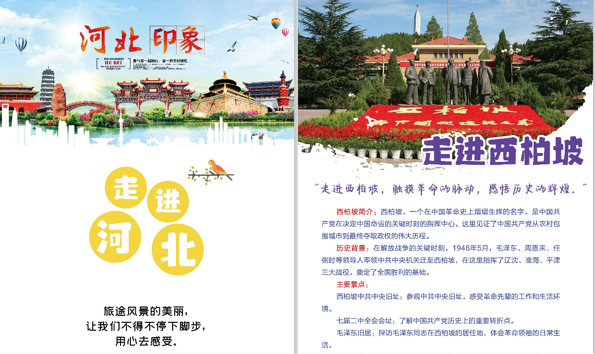 在宣讲活动中,成员们针对宣讲对象的不同,修改宣讲的内容,力争做到宣讲有重点、互动有效果、受众有收获,立足听众视角,讲好“赶考”故事。同时,成员们有选择性地开展西柏坡红色资源宣传推介,从红色旅游资源、石家庄城市风采、当地美食特产三个方面展开推荐,立足西柏坡已有资源和乡村发展情况,整理并设计文旅专线及攻略手册,融入了红色资源参观、农产品体验等,在助力乡村振兴的同时,更立体形象地呈现西柏坡精神,让更多人感受这片红色热土的独特魅力,探索这片土地上的自然风光和人文景观。