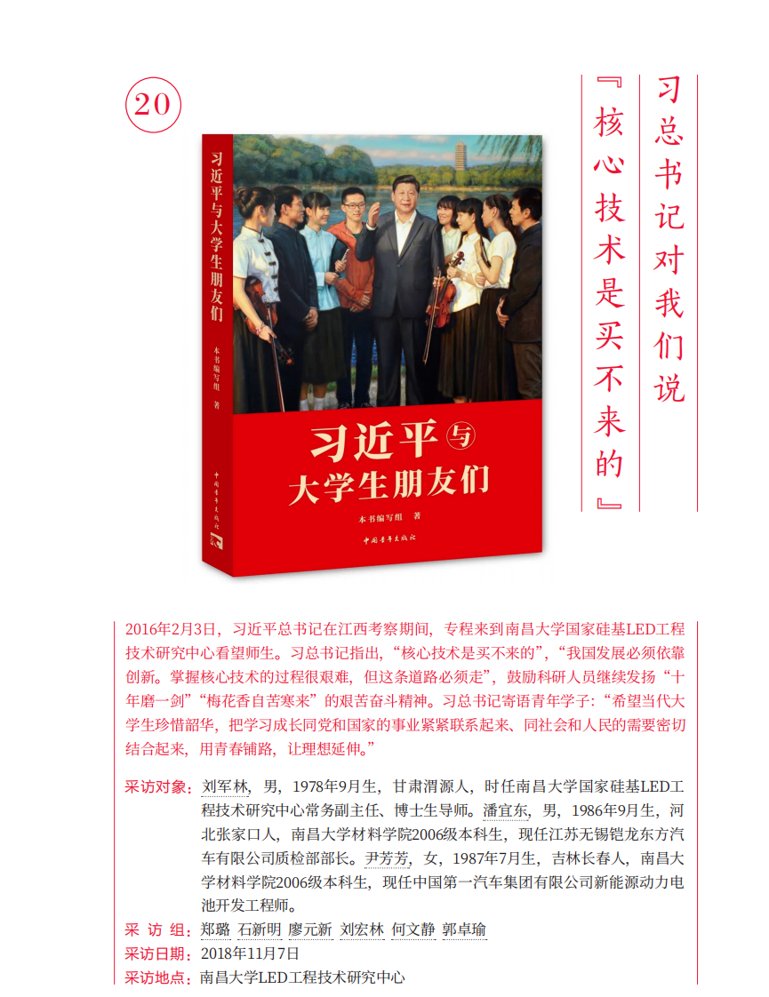 编者按:《习近平与大学生朋友们》(第一卷、第二卷)通过49篇访谈实录,讲述了习近平同志在地方和中央工作期间,深入高校调研考察、关心指导大学生、与大学生们交往交流交心的生动故事,真实记录了他对青年特别是大学生始终如一的关注关心关爱。学院融媒体中心推出“融炉学堂”,“学习贯彻《习近平与大学生朋友们》之线上微课堂”,与大家一道牢记总书记殷殷嘱托和谆谆教导,做“有理想、敢担当、能吃苦、肯奋斗”新时代好青年。