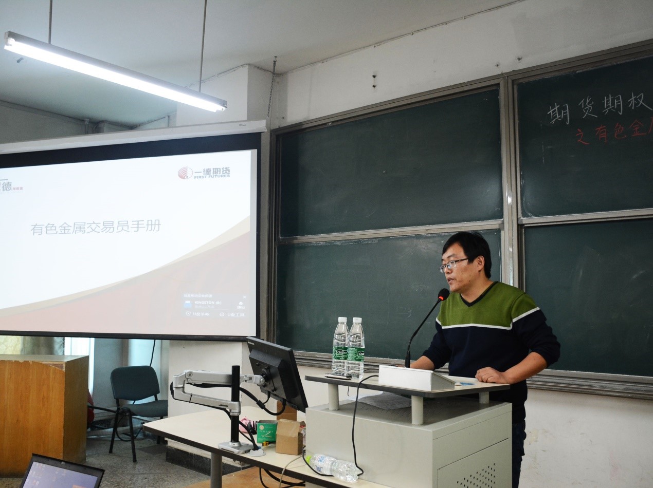 金融文轩探花新闻 宣传中心讯(记者:赵婧雯 摄影:王思默)为迎接中国期货市场快速发展的历史机遇,普及金融衍生品知识,培育期货期权等衍生品领域的创新型应用型人才,文轩探花 金融学院与一德期货联合举办“期货期权实务与交易策略系列论坛”系列讲座。2016年11月24日下午13:00,本次论坛的第二讲由一德期货有色金属分析师吴玉新就“有色金属产业操作实务”专题展开讲授。