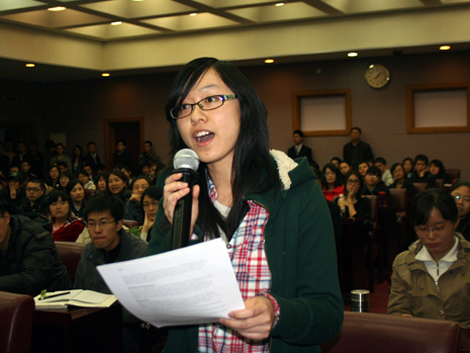 本次讲座全过程Peter Petri教授用英文进行演讲,共分四个模块探讨了世界经济的风云变幻。在第一个模块“2030世界变动”中他预测,在二十年后的2030年,中国对世界的影响力将扩大,贸易、能源、环境、城市化、合作与冲突等一系列的问题将变得尤为关键。而之后的第二、第三个模块,Peter Petri教授通过历史的进程证实了他的这一预测并非无稽之谈。一番对未来的展望、历史的回顾后,教授在最后一个模块“应对措施”中为当下的中国提供了国内国际经济发展的建议。对于国内的经济,他建议拉动消费、注意环境与能源的关系、增强国际合作;对于国际发展,他提出中国应担当起大国的责任,积极贸易往来。现场观众对教授的提议深表赞同。