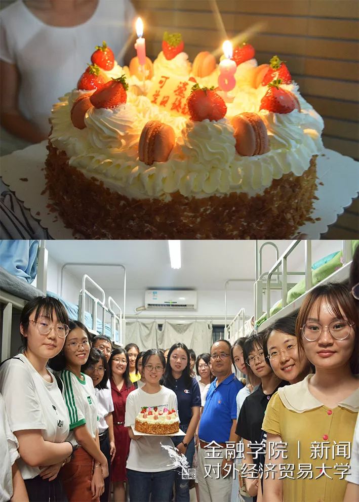 慰问活动的最后,学院领导们前往国金1904班的女生宿舍,为今天十八岁生日的杨可滢同学庆祝。精心准备的蛋糕、悠扬婉转的生日歌以及老师和同学们最美好的祝愿都在向新同学传递来自金融学院大家庭的温暖和友爱。