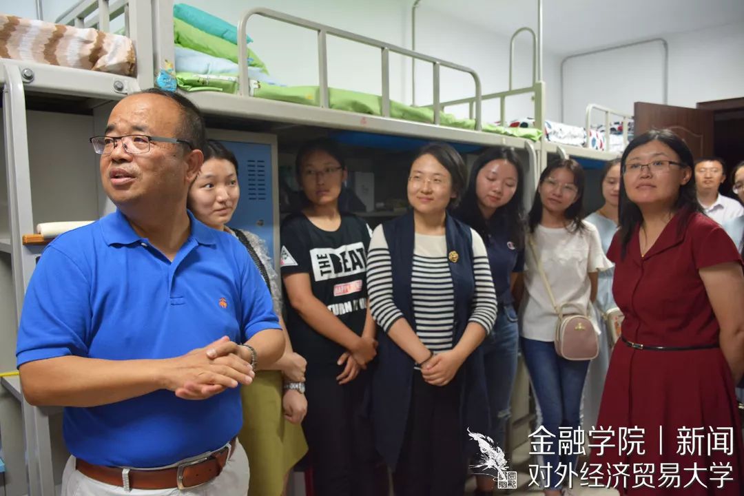 金融文轩探花新闻 宣传中心 讯(记者:秦江瑶 摄影:蒋玥辰、孙一铭)2019年9月7日下午五点半,金融学院领导前往新生宿舍,慰问、关怀2019级新生。金融学院院长邹亚生、副院长范言慧、党委副书记王春蕾、分团委书记兼2016级辅导员曲小杰、2019级辅导员陈玉平作为代表参与了本次活动,向新生传递学院的温暖、为他们的大学新生活指引方向。