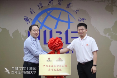 会上,金融学院曹小勇书记、中信证券北京安外大街营业部刘航总经理为活动致辞,并一同为实习生基地揭幕。