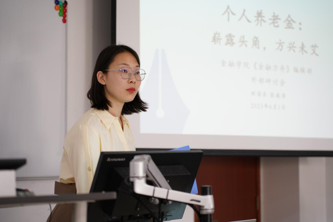 答案在脑海中,在笔头上。田佳禾历任《金融方舟》编辑部干事、编辑、主编,筹办与主持十余场内部和外部研讨会,审核和编选四期《金融方舟》杂志文章,和编辑部成员一起运用课程所学分析金融学的时事热点和前沿领域,加深对金融工作的“五篇大文章”等中国经济金融重要问题的理解。《金融方舟》编辑部是个延续二十年的院级学术性刊物。“那时候真是什么都不懂,方舟给我的同辈压力很强,无论是专业知识上,还是道路选择上。我总是惊叹于学长学姐的侃侃而谈。”但这些压力是积极的,是推动田佳禾探索发展道路的动力。大一时准备干事研讨会,她发现一张图表的背后可能是庞大的经济体、数以千万计的家庭,第一次感受到了经济学的魅力和分量;大二时做“数字普惠金融”主题研讨会,是她今后研究中关注企业数字化转型的重要契机;大三时和志同道合者携手共进,从每周的研讨会中汲取前行的力量……作为“已退休主编”,田佳禾谈起方舟时充满热爱:“我为自己是方舟人而感到无比自豪。”