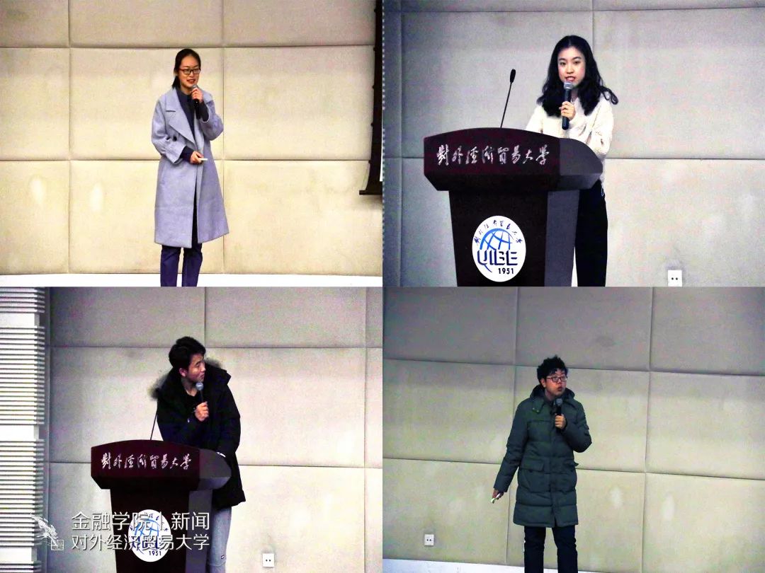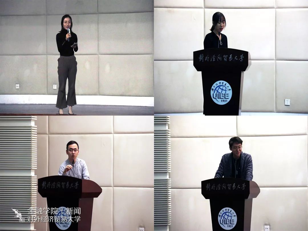 外联部副部长卢雨欣汇报了本学期各类赞助的具体数量,并回顾了短期内连续承办林建海专场报告、金融科技专题两场讲座时的忙碌与充实。生活实践部部长张婧铭在活跃的氛围中总结了走进名企之中信建投专场、新生金融安全讲座、寝室文化节、模拟炒股大赛等工作成果。