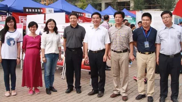 从左至右:金融学院2013级辅导员吴虹利、金融学院分团委书记陈玉平、金融学院党委副书记王春蕾、校长王稼琼、书记蒋庆哲