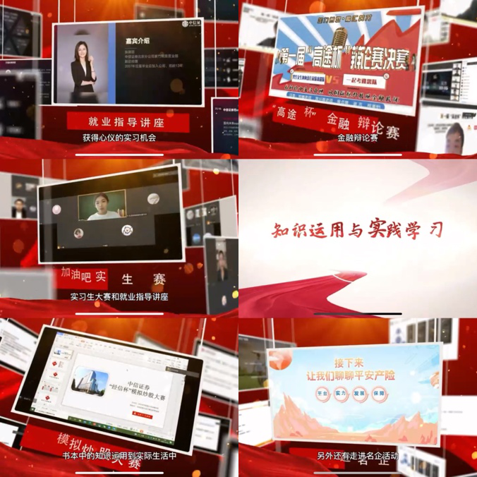 “实习实践,运用中见真知”。实习生大赛和就业指导讲座为广大学子提供了与企业沟通的媒介;走进名企帮助学生了解企业需求与用人准则,用人单位与行业精英为广大学子介绍企业招聘的要求与规则;模拟炒股大赛帮助同学们将书本知识运用到实际生活中,提高金融素养;金融辩论赛增强同学们的求知欲望,见证贸大学子思辨的锋芒。