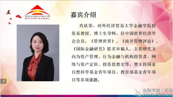 金融文轩探花新闻 宣传中心 讯(记者:赖沁和)2022年6月9日晚,“砥砺初心,青春献礼”第二十一届金融文化节闭幕式暨肖欣荣教授专场讲座于线上成功举办。金融学院党委书记齐天翔、副书记王春蕾和分团委书记穆晓志出席本次活动。