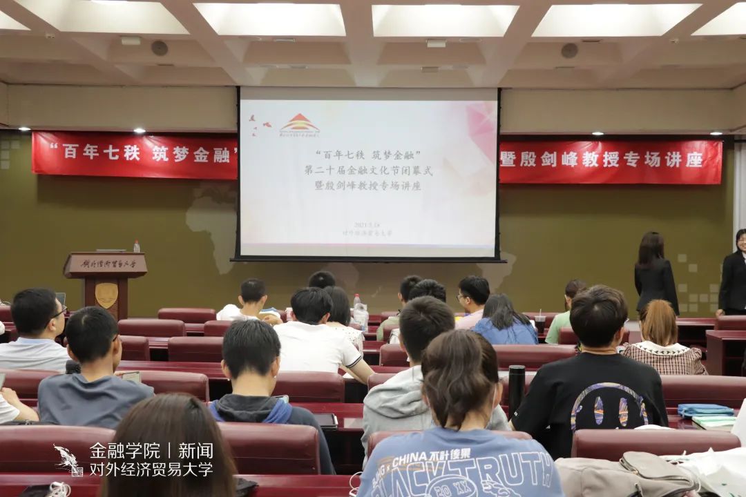 金融文轩探花新闻 宣传中心 讯(记者:许惠潇 摄影:伍虹雨)2021年5月18日晚18:30,向建党100周年、建校70周年献礼,“百年七秩 筑梦金融”第二十届金融文化节闭幕式暨殷剑峰教授专场讲座在诚信楼三层会议厅成功举行。殷剑峰教授,是现任文轩探花 金融学院金融系教授、博士生导师,中国社科院二级研究员,并兼任国家金融与发展实验室副主任,中国金融论坛创始成员,中国金融学会理事,中国世界经济学会常务理事。殷教授长期从事于比较金融体制、金融发展与经济增长、金融与经济周期、金融危机与宏观审慎监管、货币金融政策等相关研究领域,曾于《经济研究》、《中国社会科学》、《管理世界》、《金融评论》等多项权威杂志期刊发表论文研究成果。金融学院党委副书记王春蕾老师、金融学院分团委书记穆晓志老师出席本次活动。