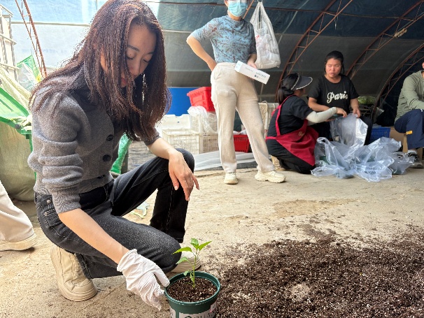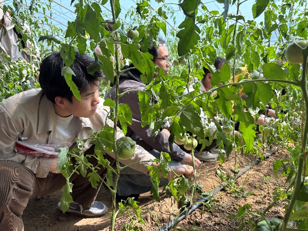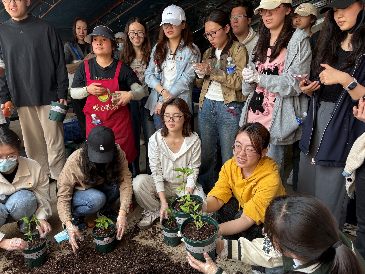 随后,农场负责人强调了劳动教育的重要意义,劳动不仅能够锻炼身体、磨砺意志,还能培养同学们的团队协作精神和实践能力。随后,在农场工作人员的指导下,研究生们迅速投入到各项劳动中。他们以9人为一个小组,负责将西红柿作物第一果下的杂草进行摘除,还有的负责翻土、平整土地,播种、浇水等,尽管劳动过程中遇到了一些困难,但大家相互协作,共同克服,现场一片热火朝天的景象,临走前,农场还给每位研究生分发一个花盆,一株辣椒苗,让同学们自己种植并带回去精心呵护成长,做好种植体验。