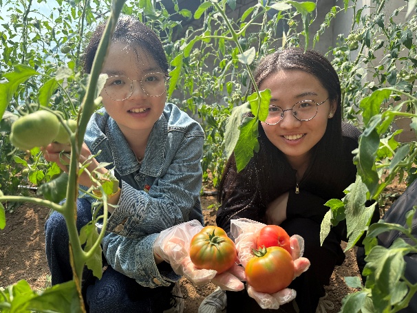 悦心农场位于房山区石楼镇,是一个综合性农业基地,采用生态循环农业模式,运用有机肥、人工除草、物理除虫等方法,杜绝化学合成药剂,确保果蔬在自然纯净的环境中生长。这里不仅是果蔬生长的乐园,更是农业知识传播的课堂,劳动教育活动开始前,农场负责人给研究生们先端出了种植的黄瓜供大家品尝。