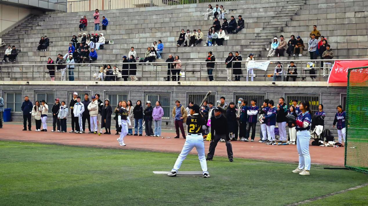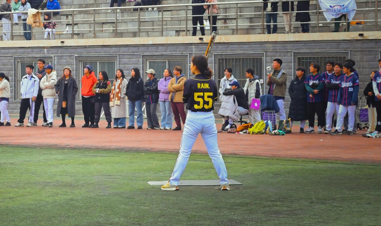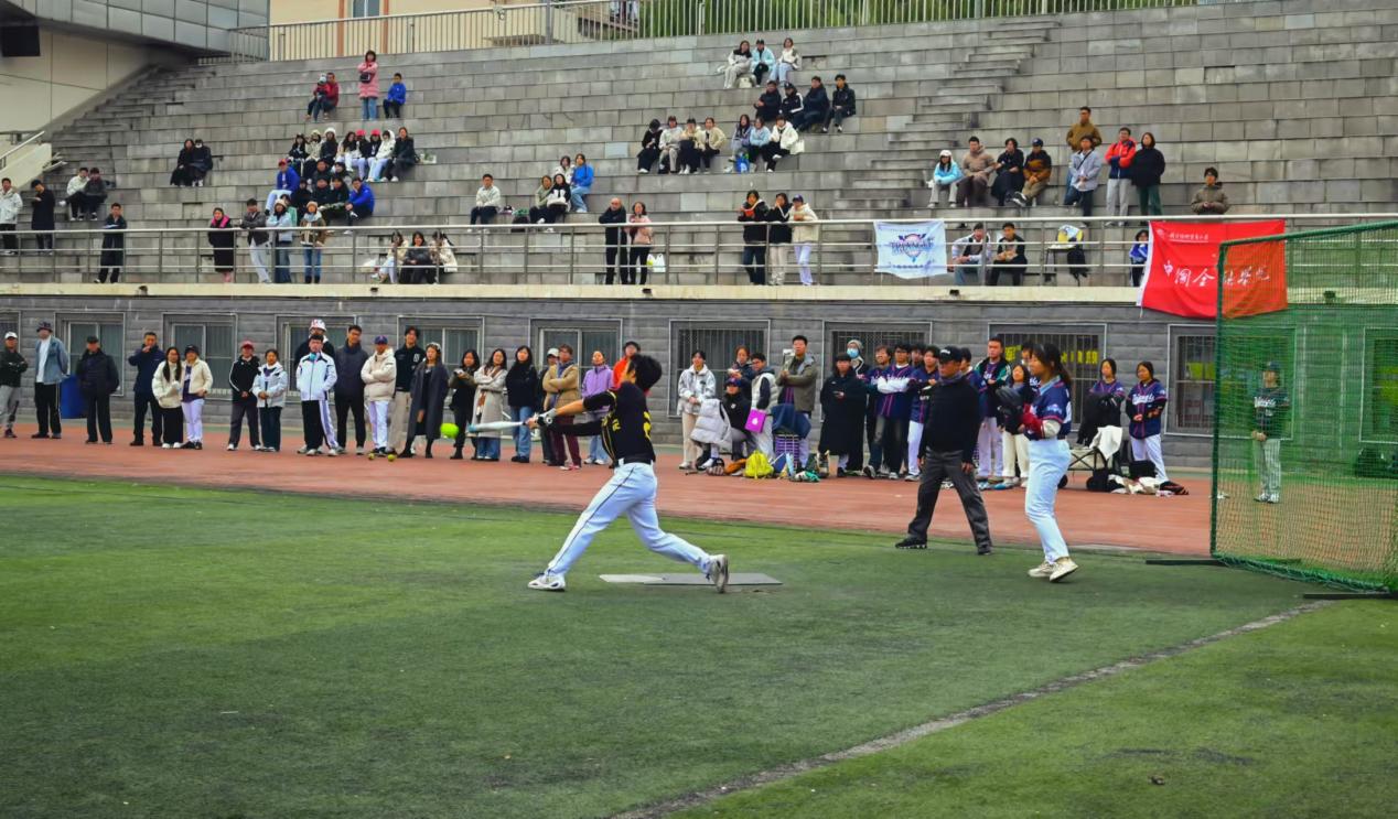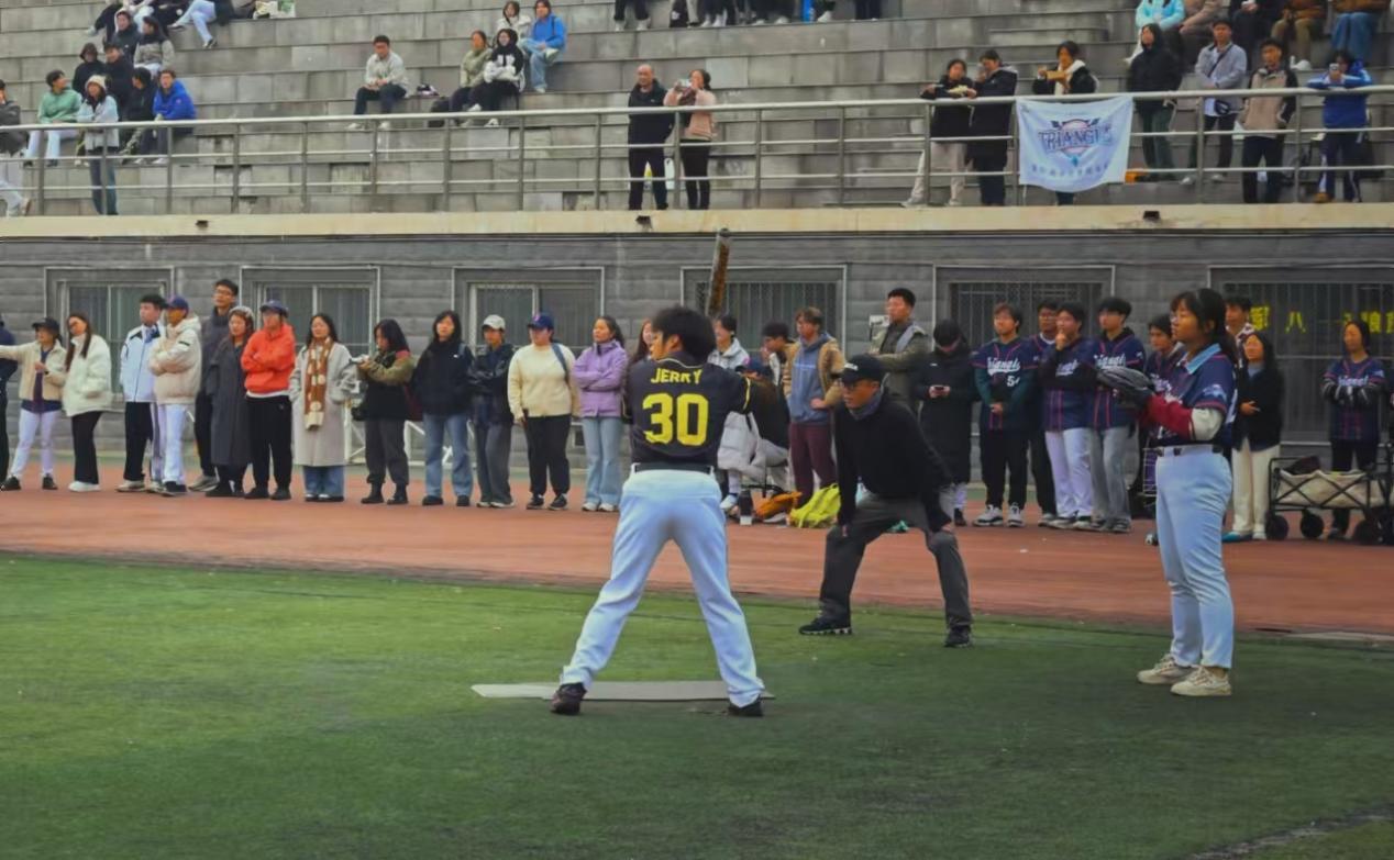 金融十棒王昕玥打出一个游击方向的精彩平飞,一垒接球失误,十棒成功上垒。一棒打出一个左外靠近边界的高飞,商院左外接杀失误,刘帅佚高兴地如同脱缰野马般开始跑垒,眼看着就要超过十棒跑上二垒,众人不由得再次倒吸一口凉气,还好,一棒最后还是慢了十棒一步上到二垒。局面定下时,是二三垒有人。三棒上场,直接打出一个右外高飞,商院右外接杀失误!场上三人不由开始大跑特跑,结果这居然是一个界外高飞。金院观众白高兴一场。不过紧接着雷明睿梅开二度,又打出右外高飞,这次是个界内球!右外接杀失误,十棒一棒跑回本垒,连下两分!