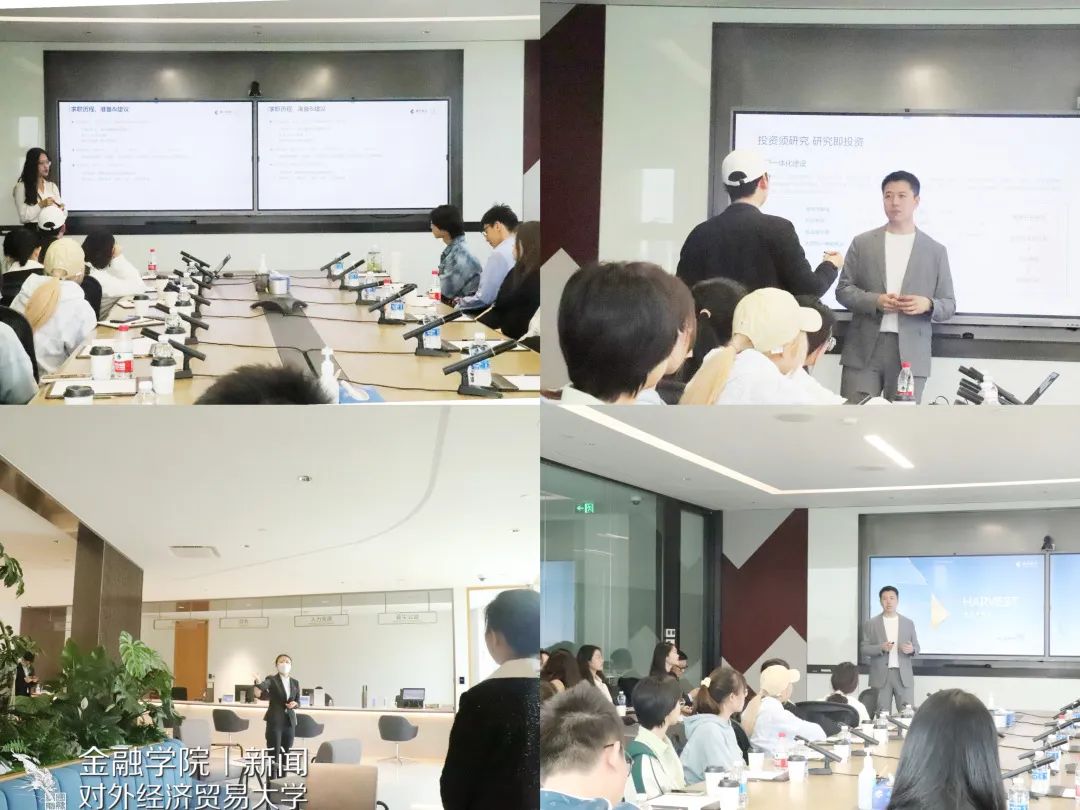参观完毕后,嘉实基金负责人就校园招聘、行业发展和市场分析等方面向参观的同学进行了全方位的讲授。