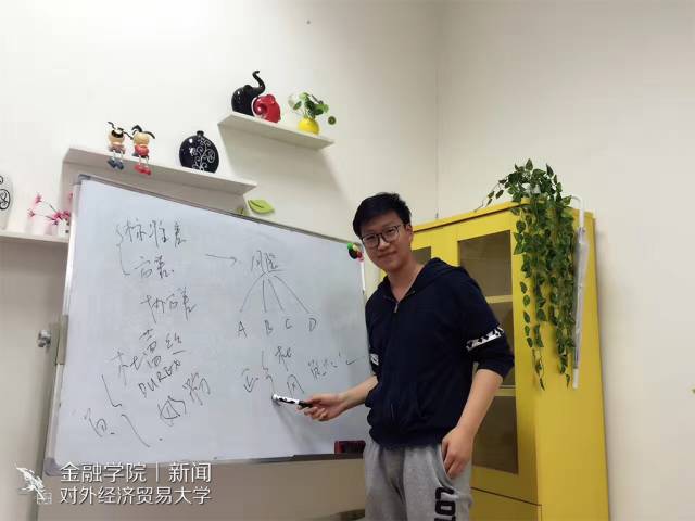 在学校,赵智鹏曾加入了多个学生部门,这些学生活动给他的大学生活加上了浓墨重彩的一笔。其中,对于他意义最为特殊的就是金融文轩探花新闻 宣传中心了。作为一个年轻的学生组织,新闻宣传中心就像是陪伴赵智鹏一起成长的战友,另一方面,它又是赵智鹏步入大学后的又一个“家”。当回忆起担任部长的那段时光,他感慨道:“当部长那一年每一天都是一首诗,每个星期我都盼着例会的召开。”而他在这个部门里感受到的如家人般的关怀与爱,也全部传递给了他的干事和部长。