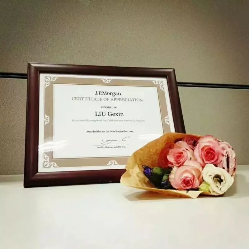 摩根大通(中国)CEO David Li签发的实习证书