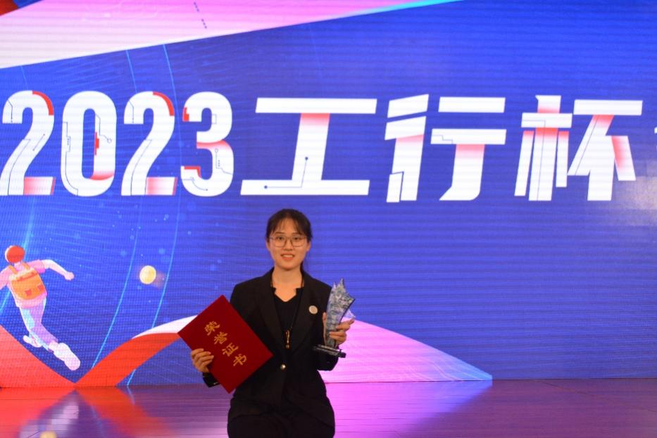 在校期间,陈旭学姐也参与了许多专业性的比赛,并取得了诸多奖项。其中在2023年的工行杯比赛中,陈旭学姐所在的小组更是获得了全国第一名的优异成绩。回顾比赛经历,陈旭学姐提到“比赛能够获得优异结果,主要靠我们三个小组成员的有效配合,每个人在小组内各司其职,形成1+1+1>3的效果。通过校内所学对金融工程相关知识的理解,叠加业界金融科技的发展进程,我们有效构建了助农金融产品,将理论应用于实践。”