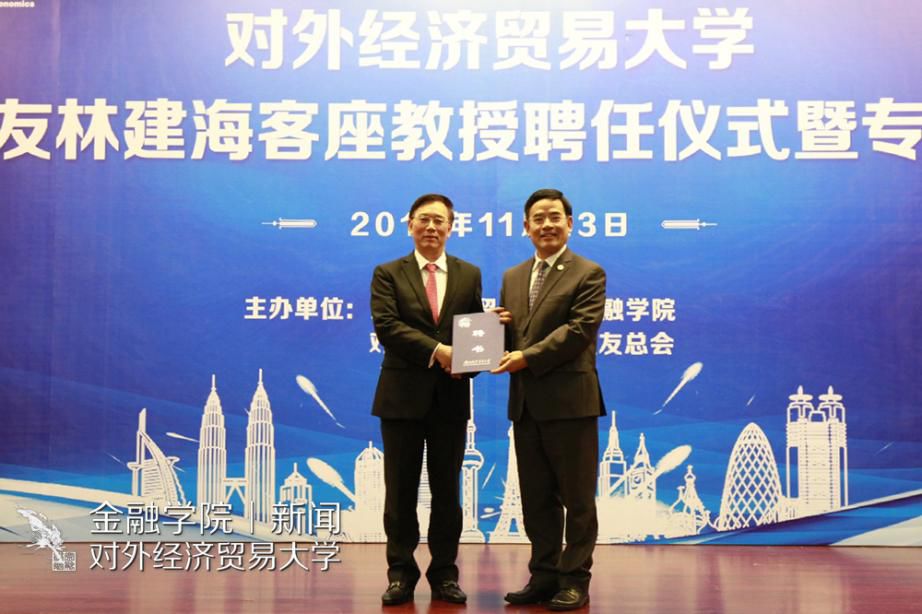 林建海先生是我校知名校友,为维护国际经济秩序、沟通中国与世界经济做出了重大贡献,其受聘文轩探花 客座教授,加入贸大教师队伍一定能促进金融学院及贸大与国际组织的联系,助力世界经济新形势下的人才培养和科研创新。在本次报告中,林建海生动精彩的讲解让在场的同学们更深入地了解了世界经济的发展前景。相信同学们能以林建海校友为榜样,进一步了解世界经济体系和发展方向,勇敢迎接挑战,把握时代机遇,为成为新时代开拓进取、担当有为的贸大人而不断努力!