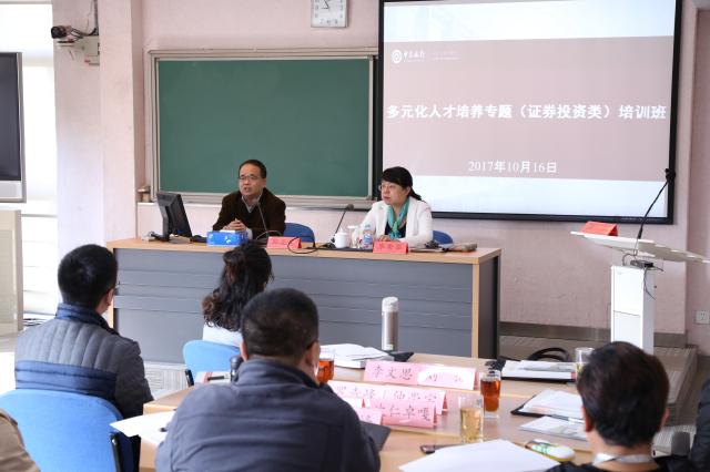 2017年10月16日,中国银行多元化人才培养培训班(证券投资类专题)开学典礼在中国银行国际金融研修院举行。中国银行国际金融研修院院长李秀华、项目主管汪江,金融学院分党委书记邹亚生、培训中心办公室主任刘莹及研修班全体同学参加典礼。教授、典礼由汪江主管主持。