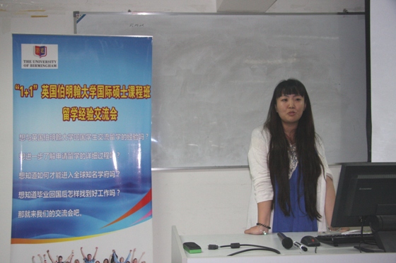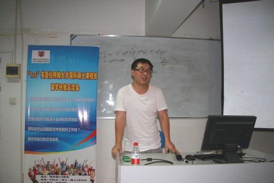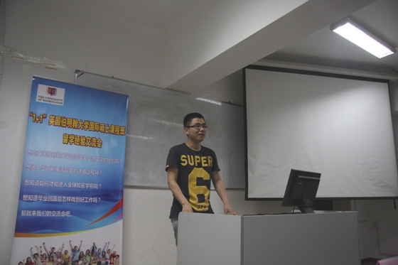 接着,陈扬同学和汪洋同学也和同学们分享了自己的经验。他们首先对伯明翰大学进行了总体介绍,包括地理位置,文化生活,学期分配,选课等。紧接着,谈到了自己在国外生活的感触,要计划好学习和生活,保持心态的平和,充分利用丰富的资源和学习机会,尝试一些新鲜事物,很好的去融入英国的本土生活。