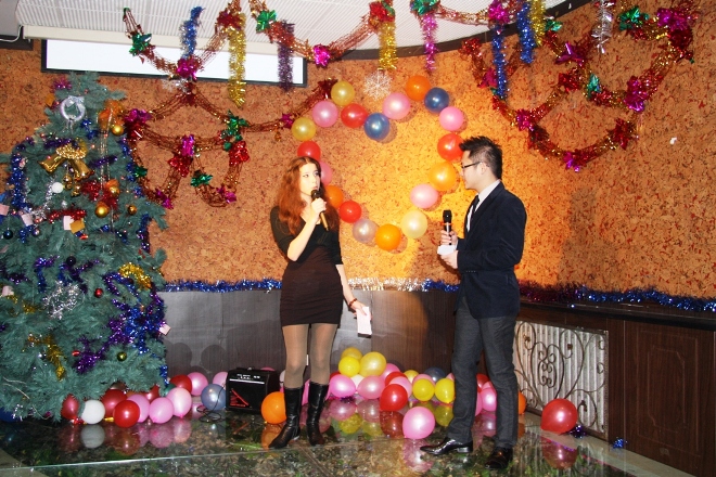 伴随着韩国留学生的开场劲舞《JYP-Hnoey》,2012金融学院留学生新年晚会正式拉开帷幕,来自俄罗斯的新生何薇娇同学和来自越南的范忠孝同学担任本场晚会的主持,他们用地道、流利的中文向大家送上了节日的祝福。