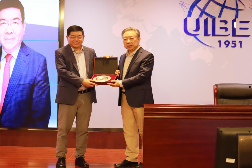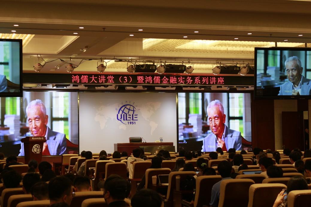 鸿儒金融教育基金会理事长张礼卿教授在致辞中对黄海洲教授担任主讲嘉宾表示衷心感谢,对参与讲座的师生表示热烈欢迎。张礼卿指出,鸿儒大讲堂系列讲座旨在搭建学术与实务的桥梁,促进交流合作。该项目致力于推动金融专业应用型人才的培养,确保学院输送的人才更符合市场需求,并为学生的职业发展奠定坚实的实务基础。黄海洲在国际主流学术界具有广泛的影响,在国际顶级的期刊上发表了大量优秀论文,并且有着丰富的政策咨询和实践经验,给同学们带来一场生动的实践课程。致辞结束后,张礼卿理事长代表鸿儒金融教育基金会向黄海洲教授授予纪念奖牌。