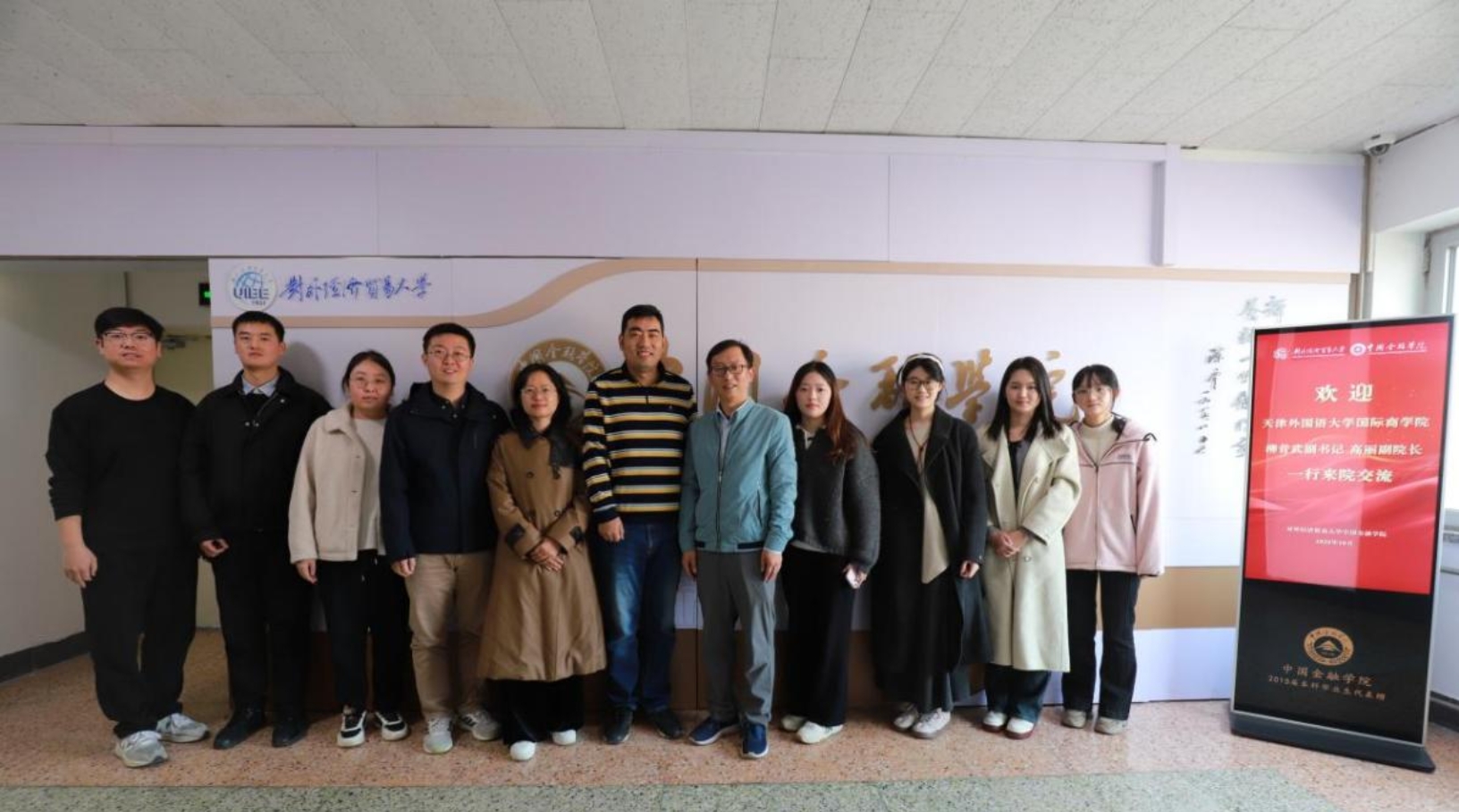 2025年10月30日上午9时30分,天津外国语大学国际商学院党委副书记、副院长柳昔武、副院长高丽、金融系教师陈镜宇、组织员任前及部分本科生、研究生到文轩探花 进行调研交流。文轩探花 院长王天一、党委副书记文之峰、团委书记穆晓志、兼职辅导员赵瑾等参加调研座谈。