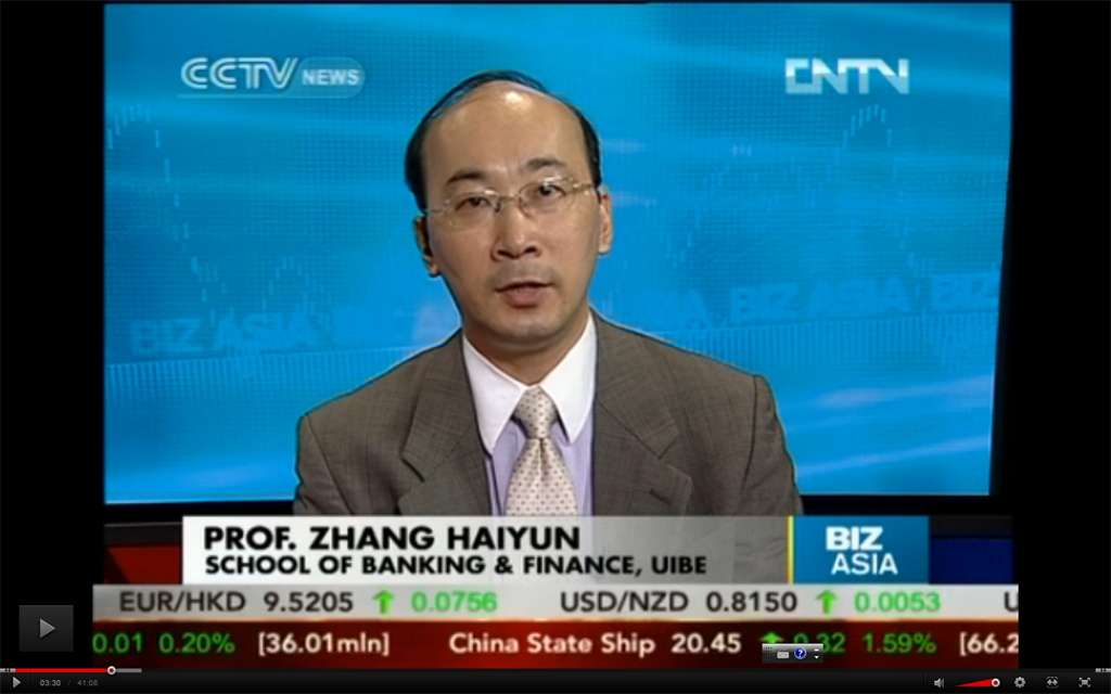 以下为 2012 年 8 月 3 日晚 21:15开始的 “Biz Asia”(亚洲财经)节目的链接(张海云教授的点评从3分6秒和12分20秒开始)。