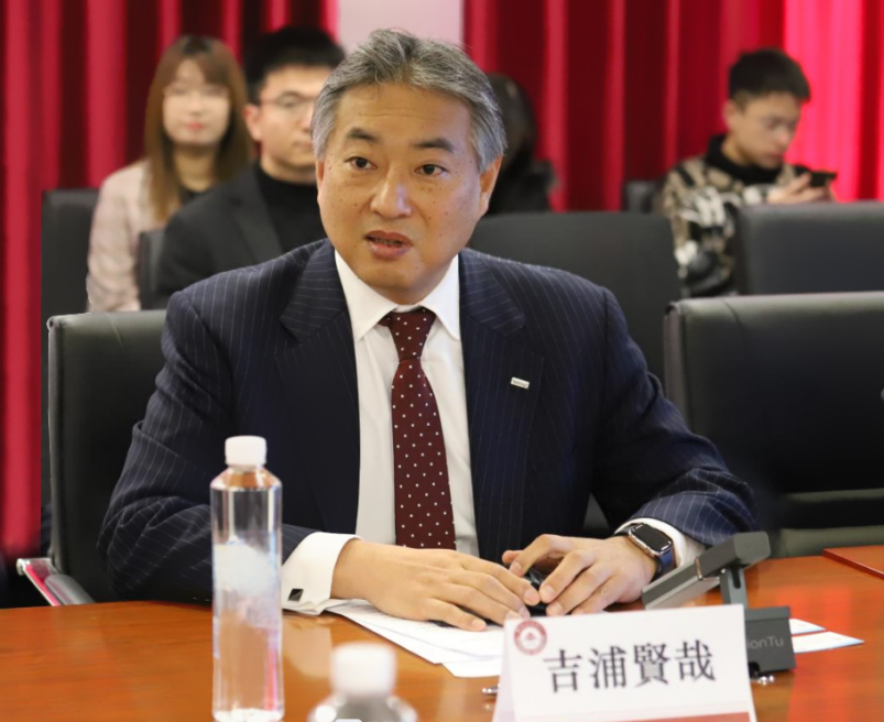 吉浦贤哉介绍了瑞穗金融集团概况和在华发展历程,强调瑞穗银行是外资金融机构中唯一一家坚持不懈投身于教育培训的日本企业。他表示希望通过本次交流会让更多教育工作者和优秀学生了解瑞穗金融集团、瑞穗银行和日本企业的文化。